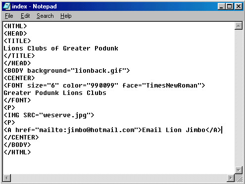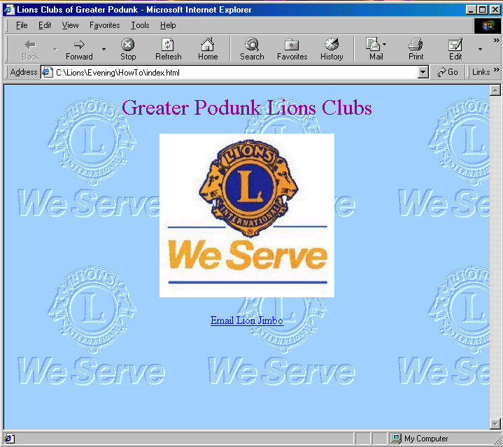 a complete Lions Club web page.